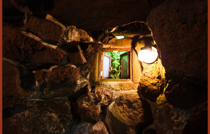 壁面どころか頭上まで天然の岩石に囲まれた貸切風呂です。昭和30年代につくられた貸切風呂のひとつで、裏山の山肌をくりぬくことで、全面岩に囲まれた空間を実現しています。浴槽はそれほど大きくなく。こじんまりとした貸切風呂ですが、当館の特徴的な風呂のひとつです。